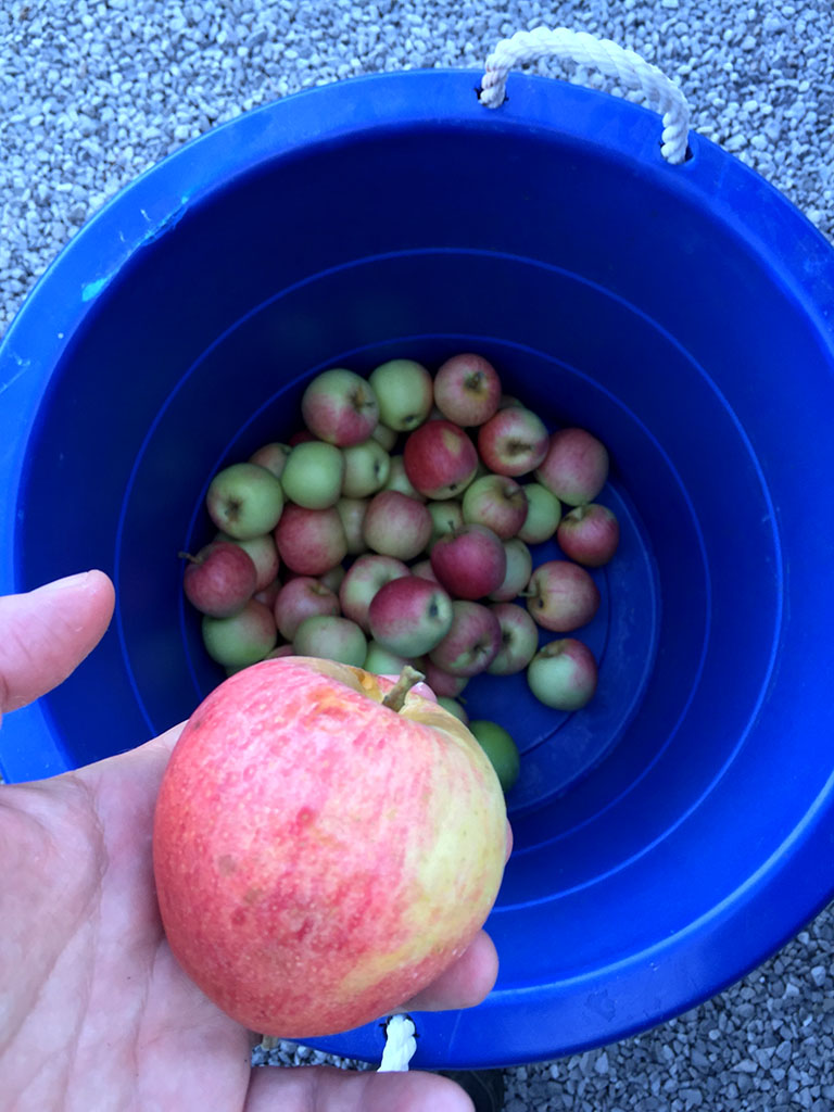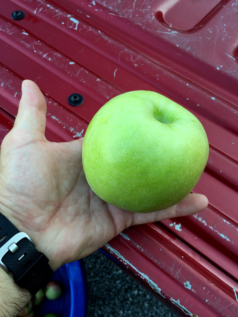 Picked some Granny Smith apples today with my trusty trident (picking tool). Some of these guys were huge.