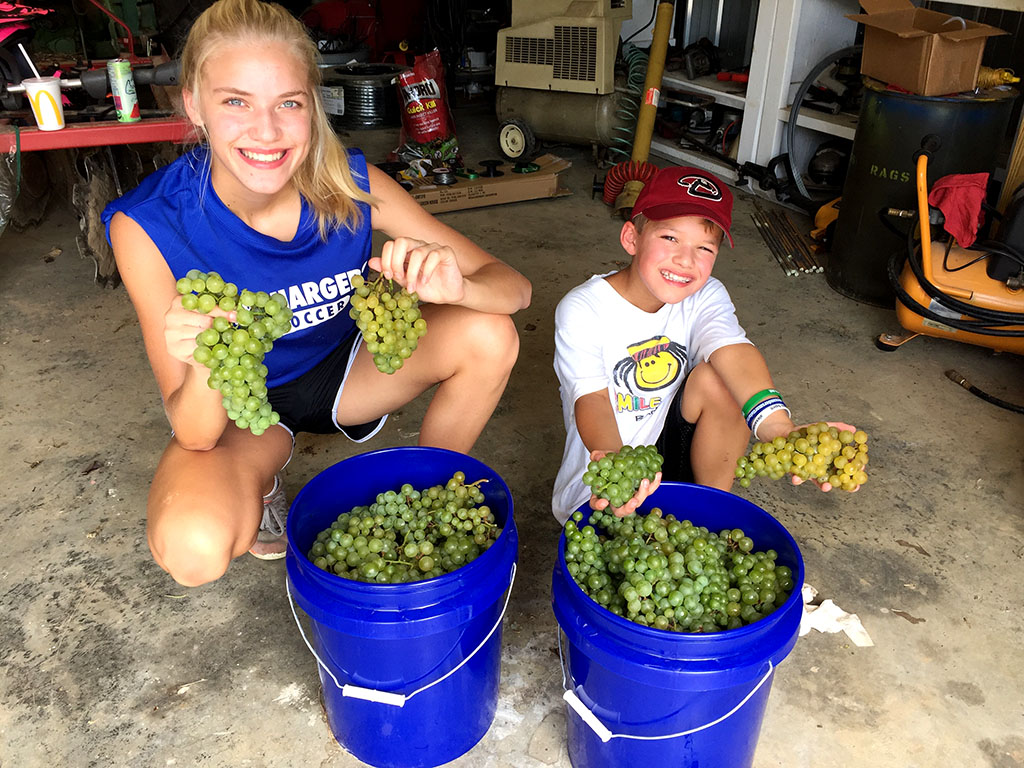 My helpers did an awesome job today. Got 250lbs of Blanc Dubois. Not bad for young vines. Next year I should be able to get a much bigger harvest. Had to stop picking 3/4 of way through due to monsoon that dumped about 2” of rain in 30min on us. Sun came back out, and picked the rest after some time to dry out.