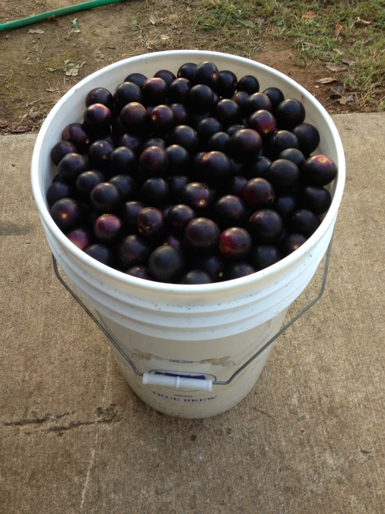 Ended up with 40 lbs of Norton grape and 60 lbs of muscadine. It takes about 100 lbs of fruit to make 6 gallons, soooooo that’s right I got lazy and just decided to crush them together. I know you shouldn’t mix, but dude I was wiped out after picking most of the day. By the way you pick muscadine, one grape at a time.
