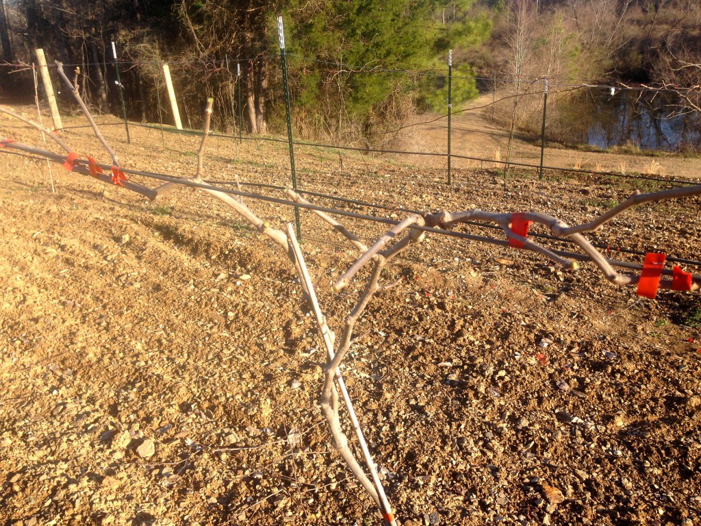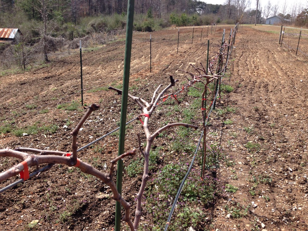 Pruned Noble Muscadine vines above