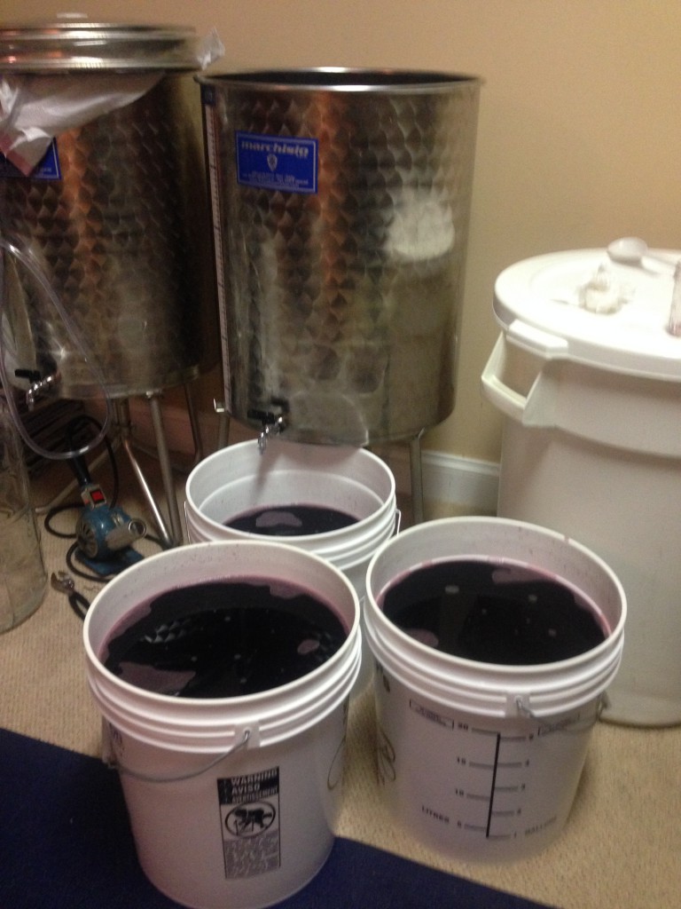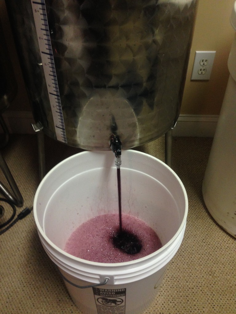 Process is to rack from stainless steal variable capacity vat to food grade buckets. After clean out the Vat, put the wine back in and make any adjustments needed. After taking PH, TA and SO2. Needed to make some minor adjustments to SO2, PH and TA were good. Put the lid back on, sealed it up and will check again in 3 months.