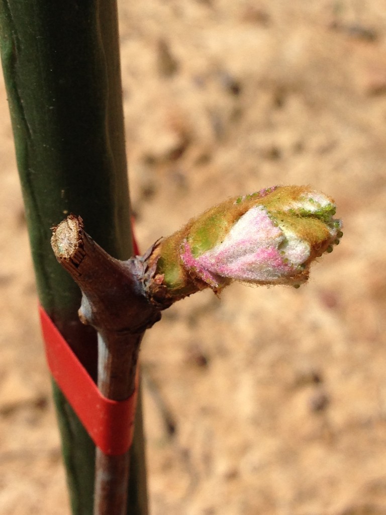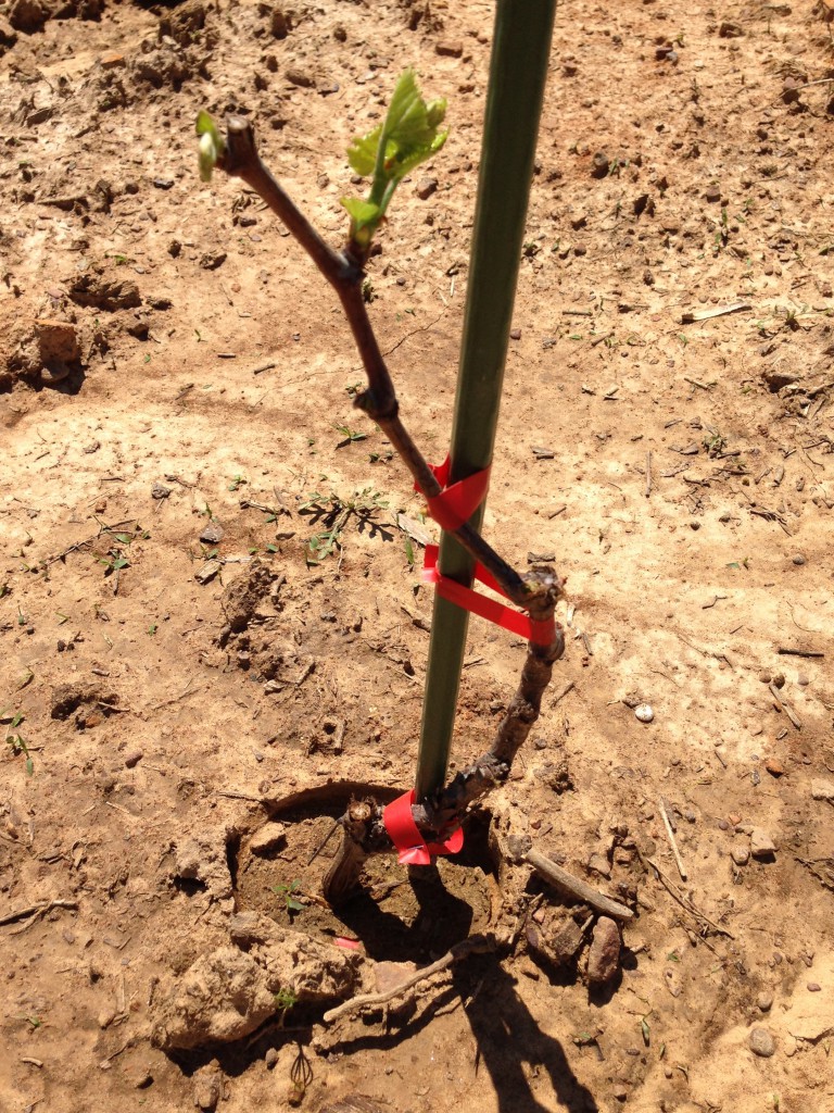 This is probably one of the most exciting dates in the vineyard especially after you just planted a few hundred dollars in new plants. This is the first sign that all that hard work will pay off with new growth.