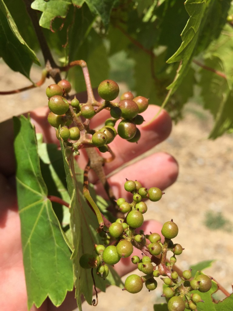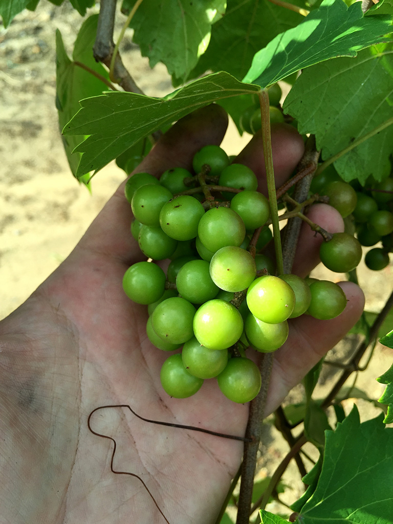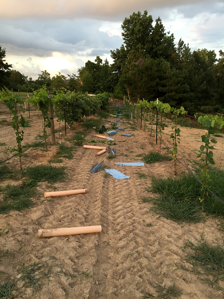 Some of the new vines weren’t looking that great with the tendrils stunted and not leading the shoot growth. Clear sign the plant isn’t getting enough water. After a quick test found a leak on the low pressure side of the plumbing. Bet the tractor hit the cover and caused the issue. Hour later, we were back up running good again.